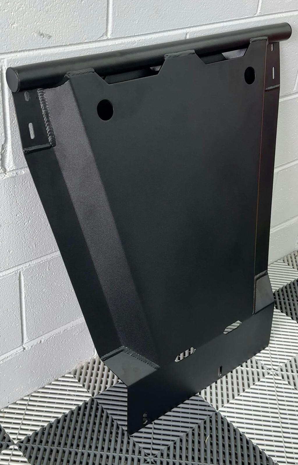 The skid plate is built extremely well. This adds a much needed layer of protection under the front bumper to shield the lower portion of the engine and other nearby components. The steel construction will easily deflect any potential hazards while both on and off the road.